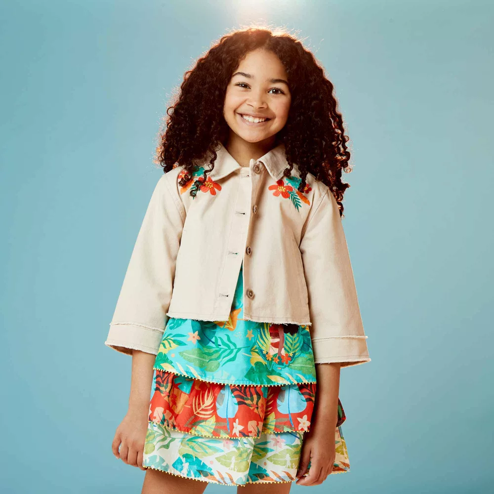 Un vent tropical souffle sur la garde-robe de votre bout de chou ! Chassez le froid avec ce blouson dĂ©corĂ© de fleurs brodĂ©es Ă l’avant et d’un imprimĂ© Vaiana sur la doublure.