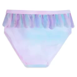 Cet été, votre enfant va régner sur la piscine grâce à ce maillot de bain deux pièces à l’effigie d’Elsa et à son chouchou assorti. Un magnifique motif façon portrait d’Elsa et de sa fidèle monture Nokk orne le haut. Un empiècement transparent placé par-dessus ce dessin permet de retenir des étoiles métallisées et des confettis, comme une boule de neige. Ce modèle inspiré de La Reine des Neiges 2 est agrémenté de bordures en pétales d’organza et d’une encolure digne d’une tête couronnée.
