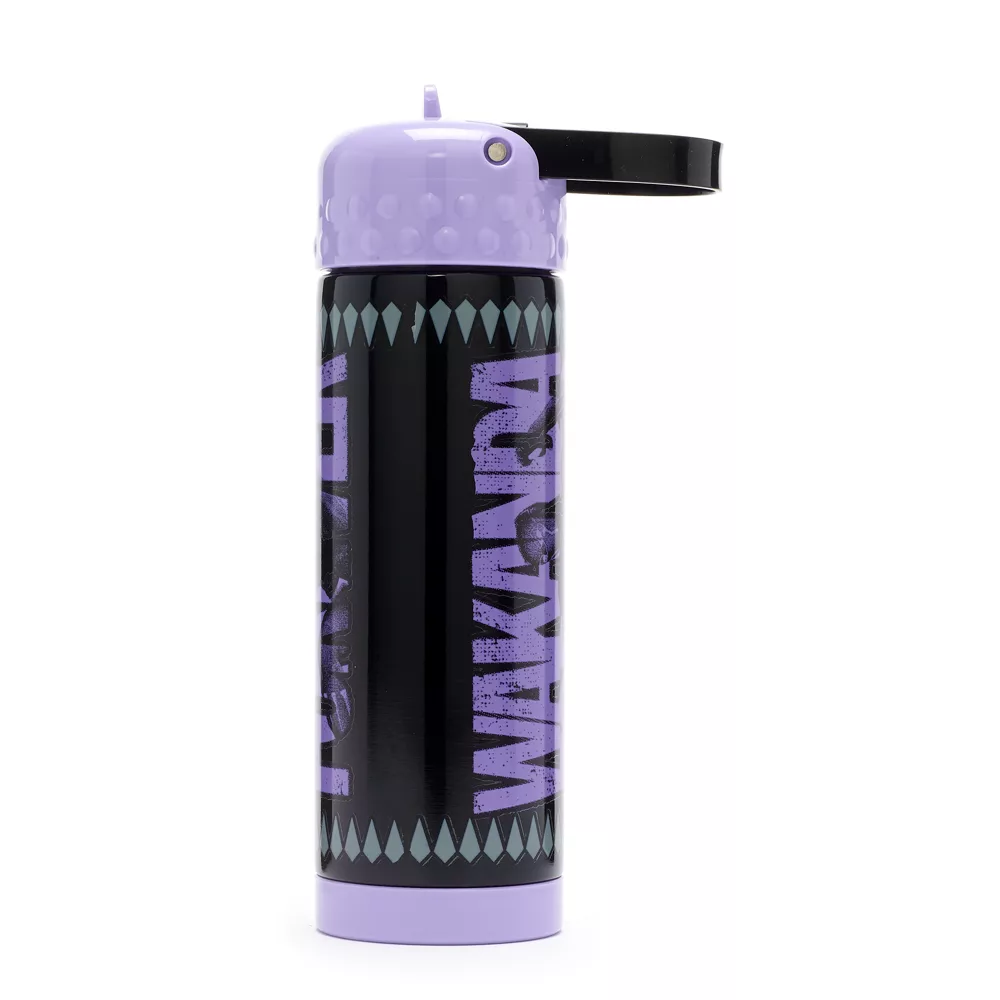 Aidez vos petits super-hĂ©ros Ă bien s’hydrater après la rentrĂ©e avec cette gourde Black Panther. Elle est dotĂ©e d’une anse et d’une paille rabattable, et prĂ©sente l’inscription « Wakanda forever » (Wakanda pour toujours). Un accessoire royal !