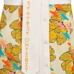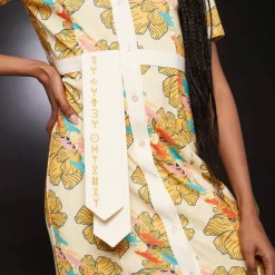 DĂ©marquez-vous avec cette robe Black Panther ! Ce modèle Ă©lĂ©gant prĂ©sente un imprimĂ© floral intĂ©gral, des boutons sur le devant ainsi qu’un noeud Ă la taille avec une inscription en wakanda.