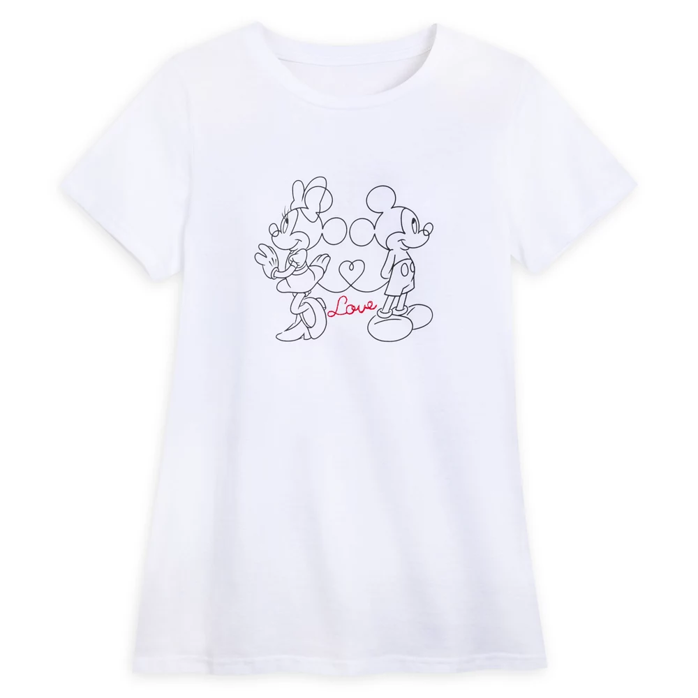 Ajoutez un peu de douceur à votre garde-robe avec ce t-shirt Mickey et Minnie ! Ce modèle présente un coeur formé par les queues des deux personnages.