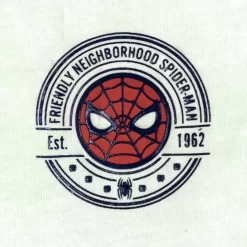 - Inscription « Friendly neighbourhood Spider-Man: Est 1962 » (Spider-Man veille au grain : depuis 1962)