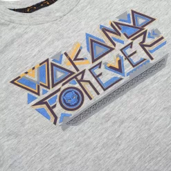 Affichez fièrement les couleurs du Wakanda avec ce t-shirt Black Panther. Ce modèle confortable comporte une inscription colorée et un motif géométrique.