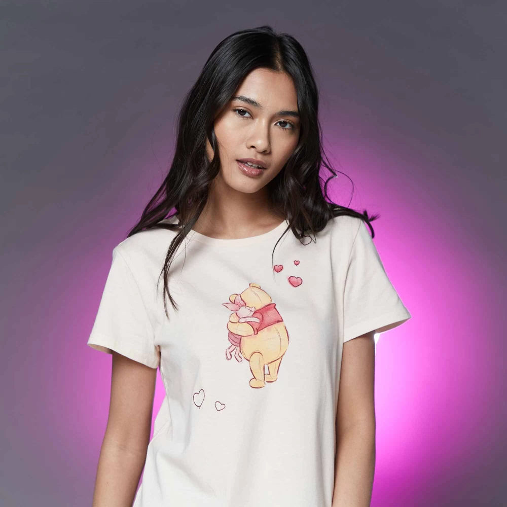 Un cĂąlin est toujours de la bonne taille ! Ce t-shirt adorable rend hommage Ă l’amitiĂ© de vos personnages prĂ©fĂ©rĂ©s, Winnie l’Ourson et Porcinet. Ce modĂšle craquant prĂ©sente un motif classique Ă l’effigie des personnages Ă l’avant.