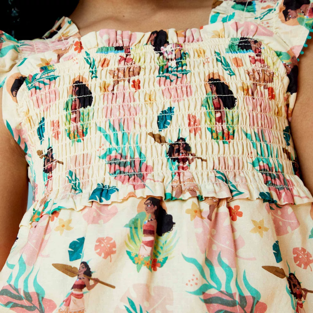Avec son corsage froncé, ses pompons et son imprimé intégral style océan à motif personnages, ce top Vaiana deviendra un favori de votre bout de chou.