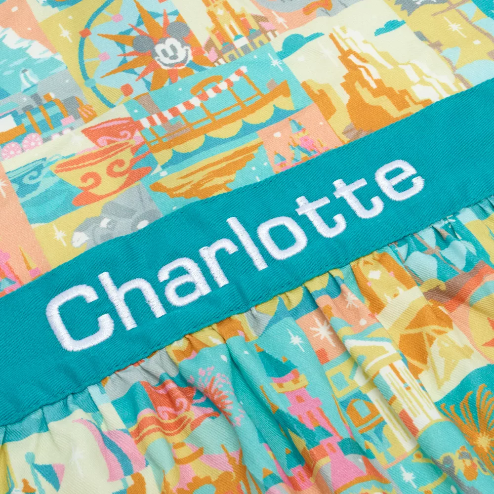 Vous allez créer toutes sortes de délicieuses gourmandises avec cet adorable tablier ! Ce produit présente un imprimé intégral représentant les attractions de Disneyland, rehaussé de bordures contrastantes.