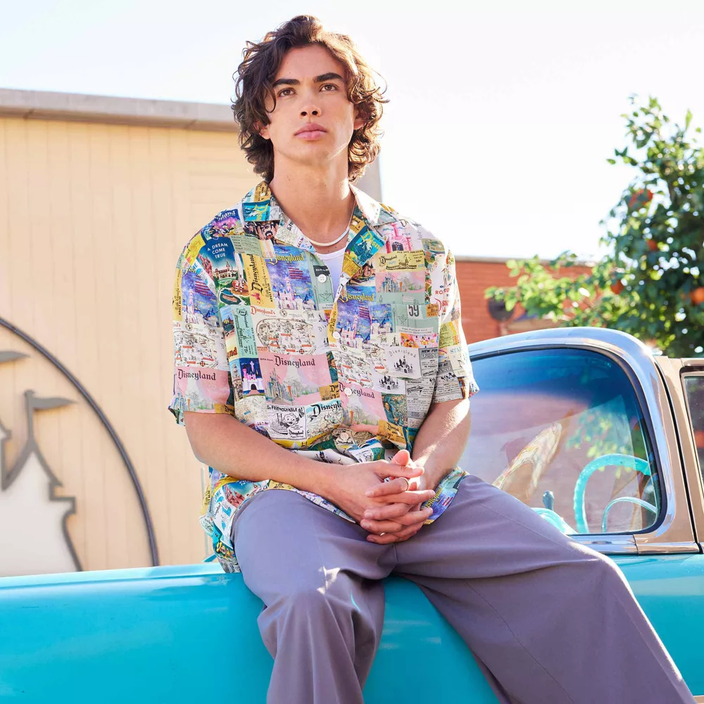 Cette chemise tissĂ©e kitsch comporte un col, une poche sur la poitrine et un motif composĂ© d’un collage de visuels vintage de Disneyland. Adoptez la magie de Disney !