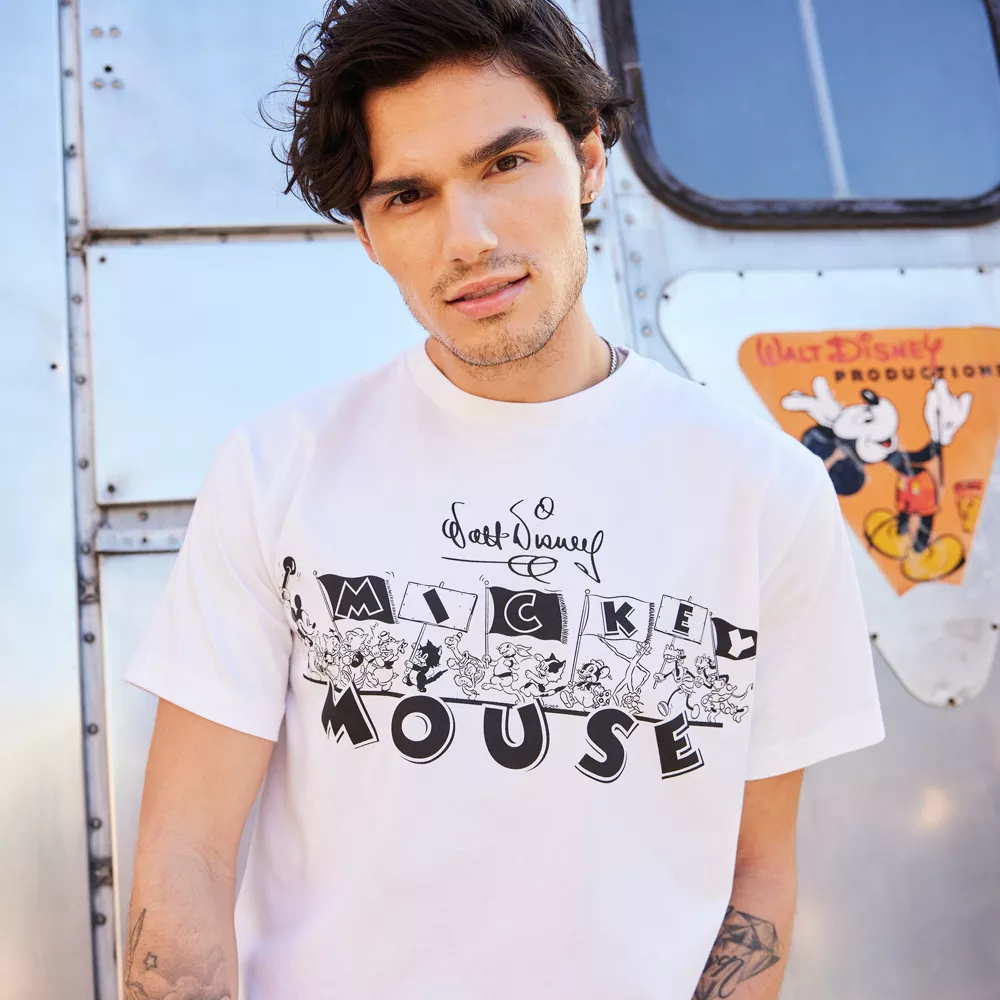 Mickey mène la troupe de vos personnages Disney préférés des dessins animés des années 1930 Mickey Mouse et Silly Symphony sur le motif vintage de ce t-shirt en coton tout doux. Entrez dans la danse et égayez votre journée !