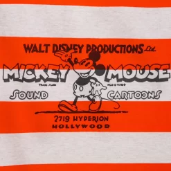 Mickey s’invite sur ce t-shirt rayé ! Ce modèle cĂ©lèbre les 100 ans de The Walt Disney Company en rendant hommage au dessin animĂ© Mickey Mouse, une sĂ©rie de courts mĂ©trages produits par Walt Disney Productions.