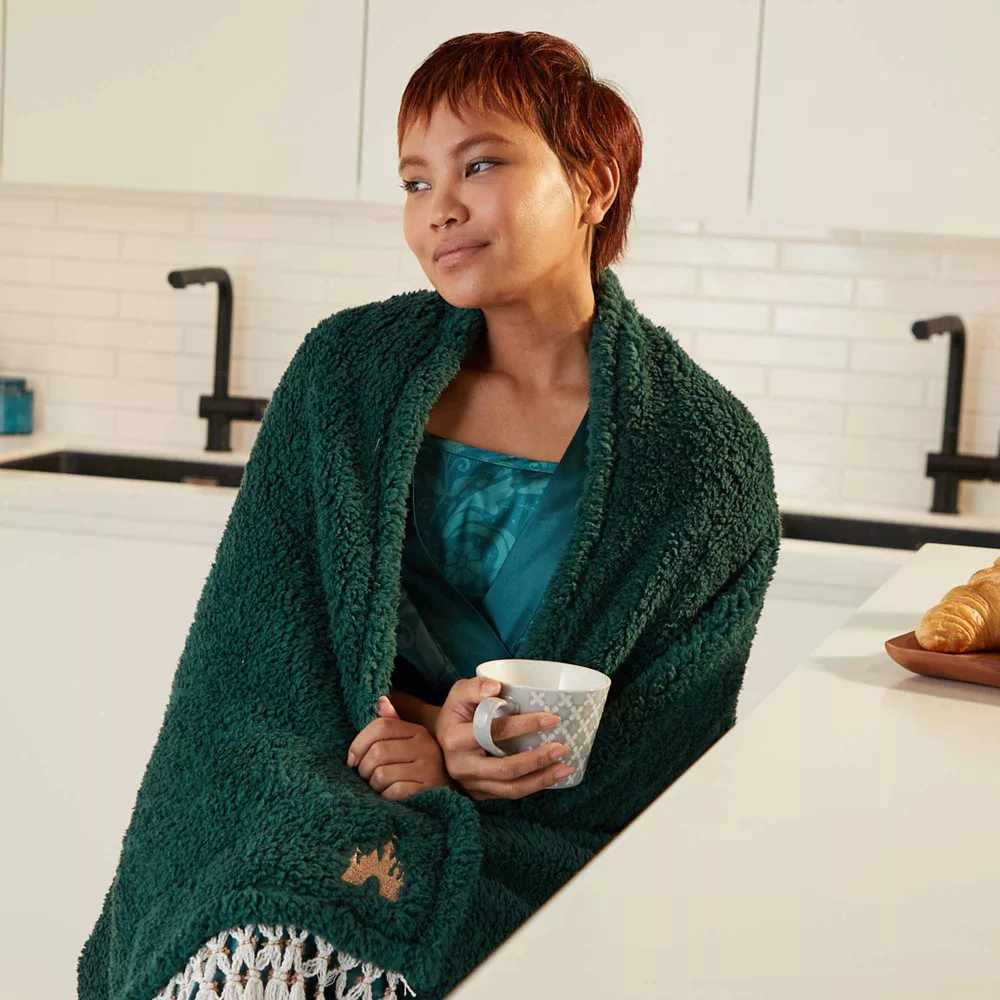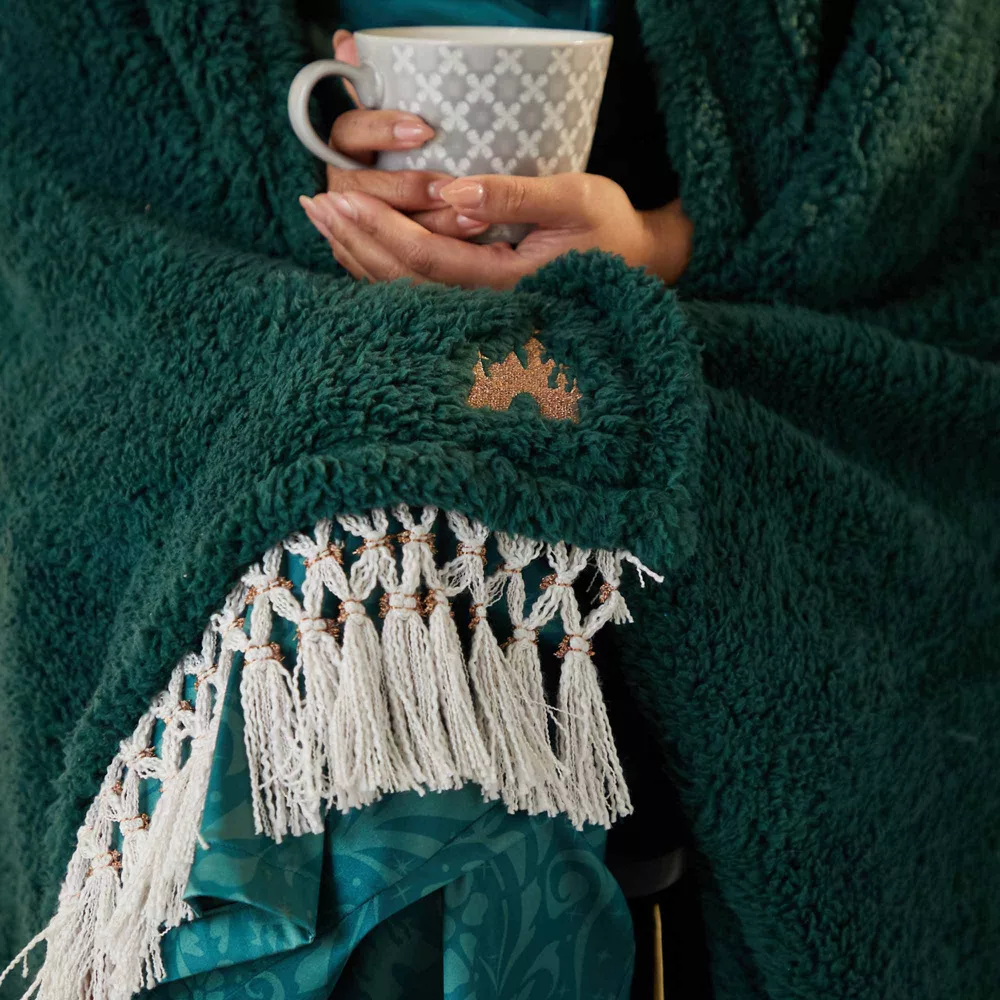 Blottissez-vous sous ce plaid polaire ! Ses pampilles en bordure et ses broderies dorées auront tôt fait de vous séduire.