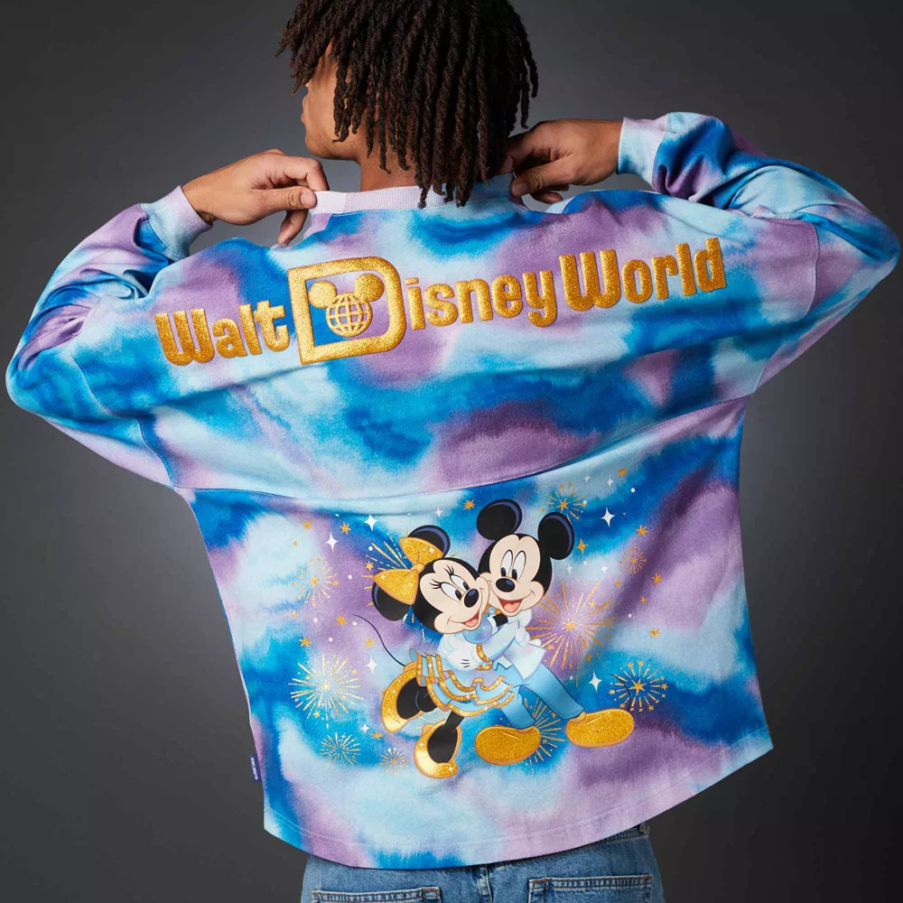 Mickey et Minnie admirent le bouquet final du cinquantenaire de Walt Disney’s World ! Ce Spirit Jersey colorĂ© comporte une inscription pailletĂ©e en relief et un adorable motif des personnages.